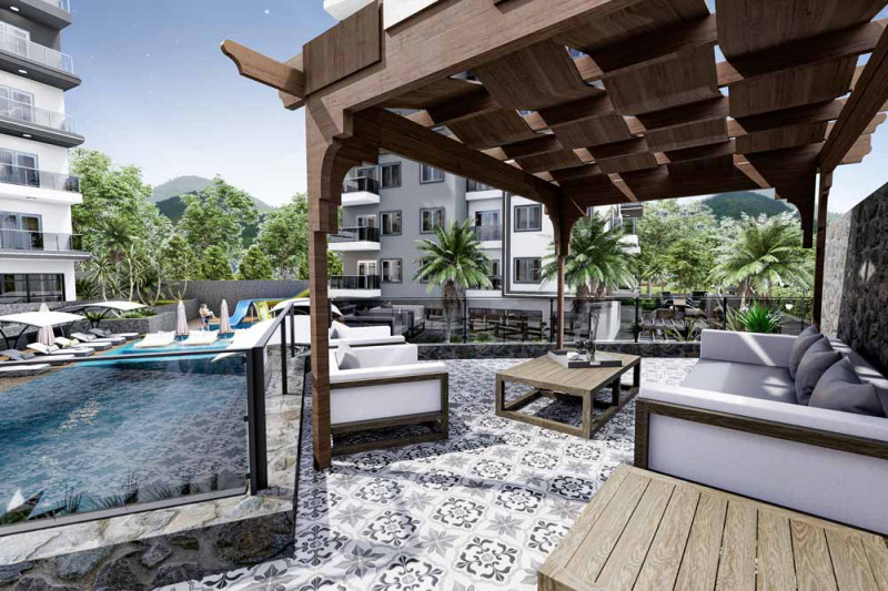 Outside guests benefit from a beautiful pool that is shared among the six apartments in the developments and the pretty garden around the development. There is also parking reserved for each apartment just beside the development.