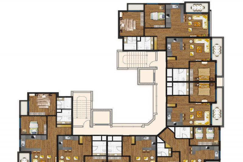 - The areas of the apartments vary between 54 m² and 226 m², complying with all living requirements and suit all tastes.