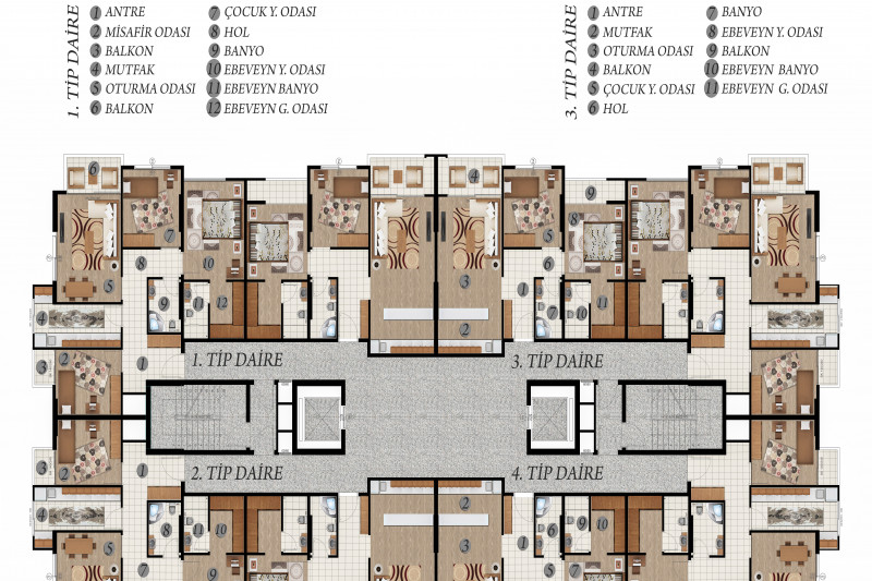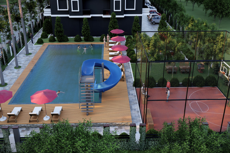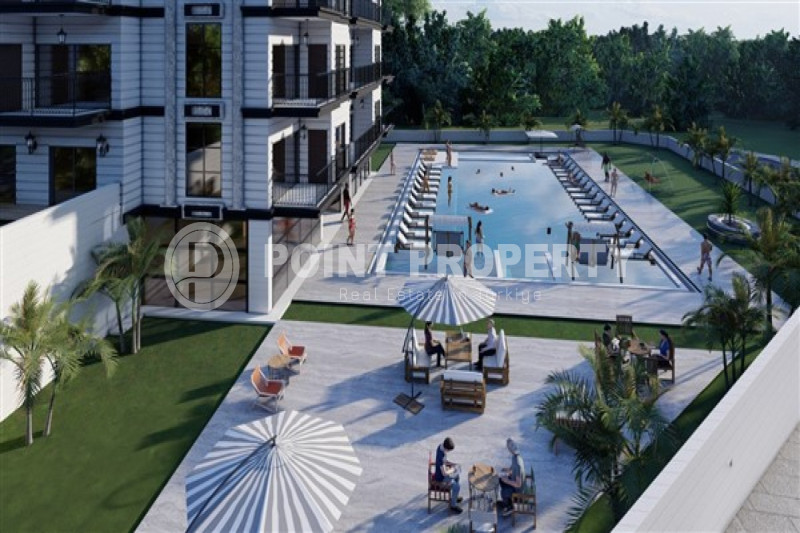 The complex will be located 1000 meters from Cleopatra Beach and 1300 meters from the port of Alanya. The favorable location of the object from the famous beach, as well as the accessibility of the entire urban infrastructure, makes the object very attractive for both permanent residence and long-term investment.