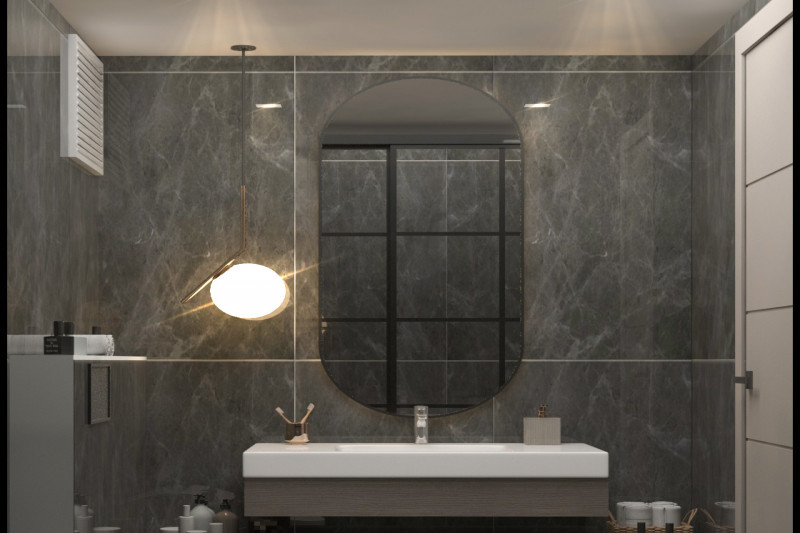 Cabinets and mirrors in bathrooms of special design