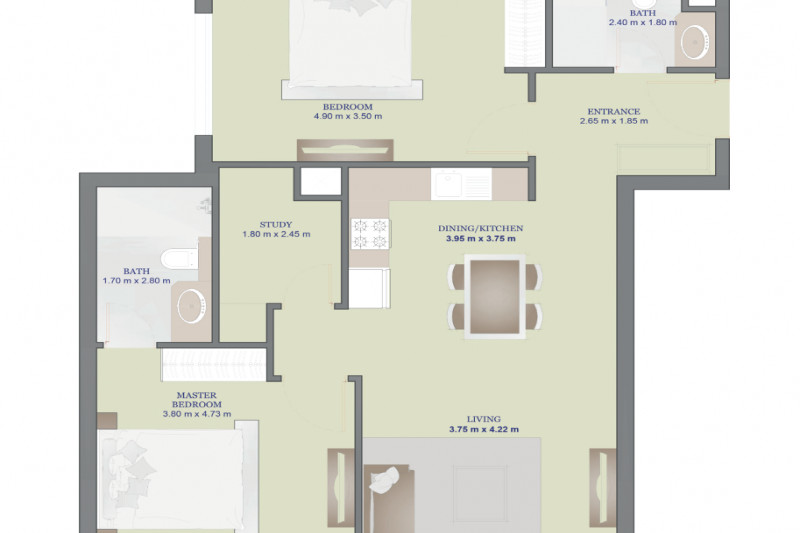 Units at District One Residences are available in 1, 2 and 3 bedroom apartments in low to mid-rise towers from four to sixteen stories. The apartments are equipped with everything you need: from schools, retail stores to restaurants, entertainment venues. Prices for 1 bedroom apartments start at AED 1.2 million.