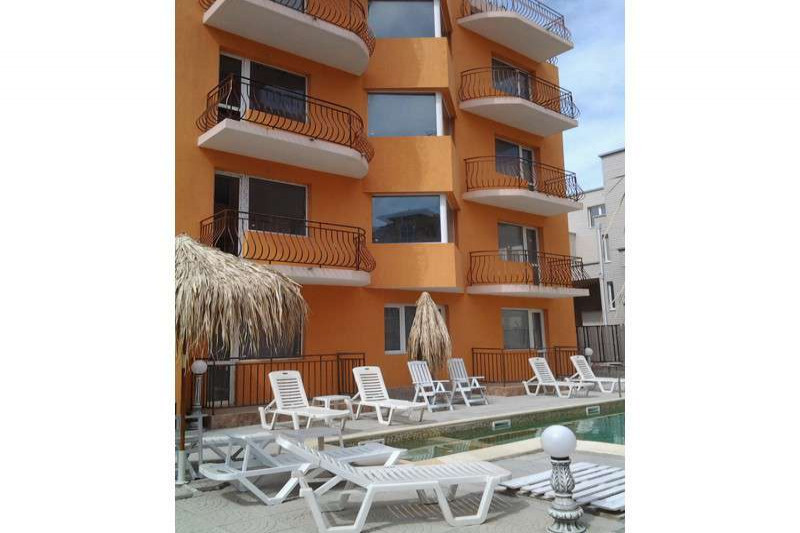 Здание монолитное, из армированного бетона высокого качества Б20. Перегородки и внешние стены сделаны из кирпичей с термоизоляцией 8 см. Керамические кирпичи отличаются микропористой капиллярной структурой и обладают способностью «дышать» - впитывают лишнюю влагу воздуха и вытделяют ее при низкой относительной влажности воздуха в помещении, т.е. выступают как естественный регулятор микроклимата. Средиземноморский стиль в архитектуре. Во всех апартаментах предусмотрены двойные окна - четырекамерный ПВХ профиль цвета „золотой дуб”. Коридоры общего ползования облицованы врачанским натуральным камнем и розовым гранитом. При облицовке фасада использован естественный камень (испанский травертин) и комбинация из структурной полимерной гидрофобированной замазки, парапеты из кованого железа. Для удобства проживающих инсталирован бесшумный гидравлический лифт класса «люкс. Поддержка общей частей.