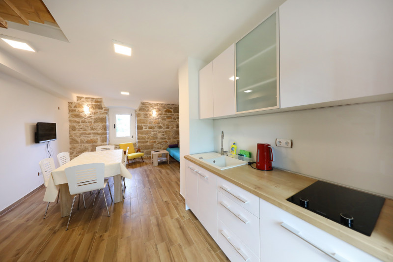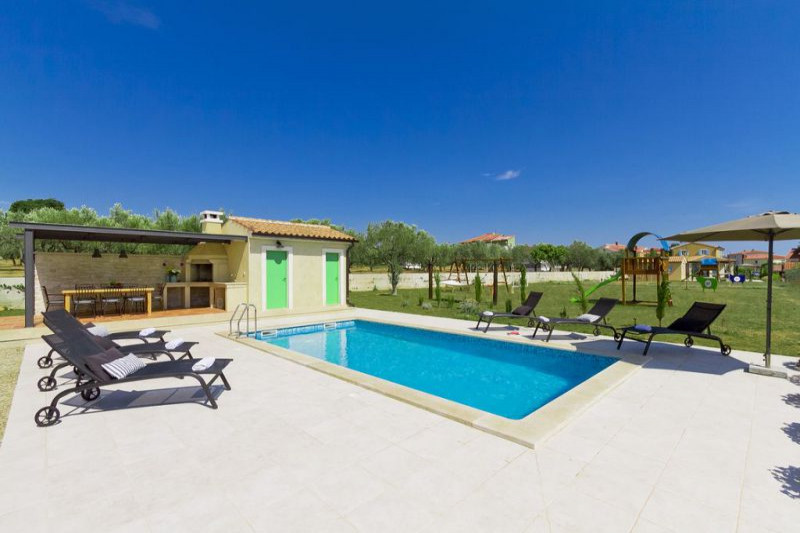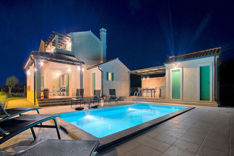 Предлагается новая вилла в живописном местечке Тиньян, в 20 км от известного туристического города Пореч. Вилла расположена в уединенном месте, в окружении природы и ориентирована на юго-запад. Площадь 190 кв.м включает два этажа. Первый этаж состоит из просторной гостиной, объединенной с кухней-столовой, спальни с гардеробной и ванной комнатой, террасы с выходом к бассейну, зоне отдыха и летней кухне. На втором этаже находятся две просторные спальни с террасами и ванными комнатами. Отопление и охлаждение дома, так же как и обогрев полов с помощью теплового насоса. В гостиной установлен камин. На ухоженном участке площадью 793 кв.м находится бассейн, обустроенный тиковым деревом, с системой обогрева и автоматическим очищением. Участок с автоматическим поливом засажен средиземноморскими растениями. Установлены системы сигнализации и видеонадзора.