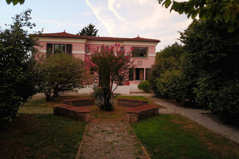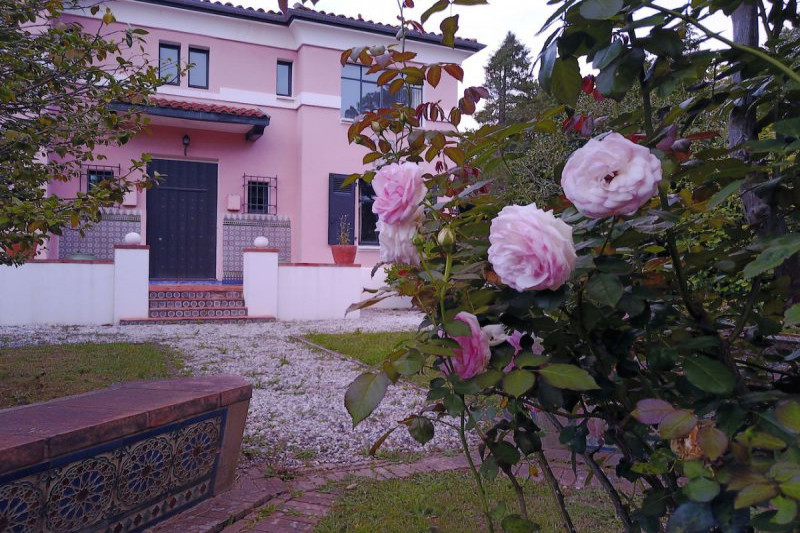 Вечнозелёные сосны и кедры, пальмы и магнолии, розовые кусты, оливковые и фиговые (инжир) деревья окружают прекрасный дом в стиле басков.