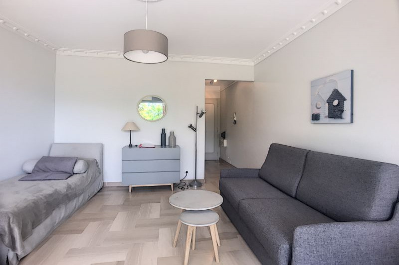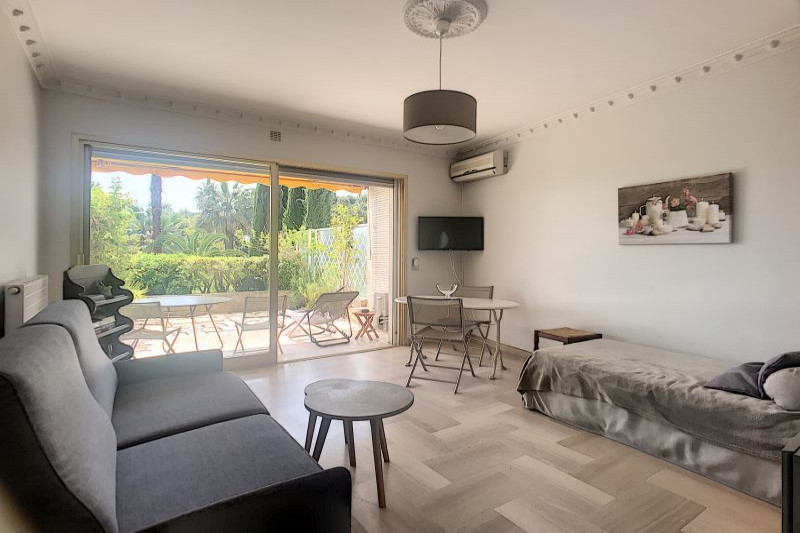 Редкое предложение! Квартира в отличном состоянии в качественной резиденции в двух шагах от центра Жуан ле Пен и в то же время в тишине. Жилая площадь составляет 50 м2: гостиная, спальня, 1 ванная комната. Гараж. Терраса 10 м2.