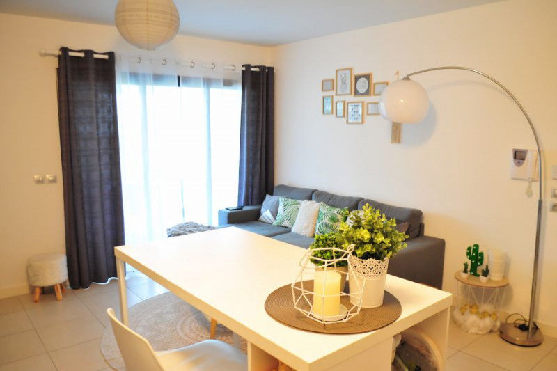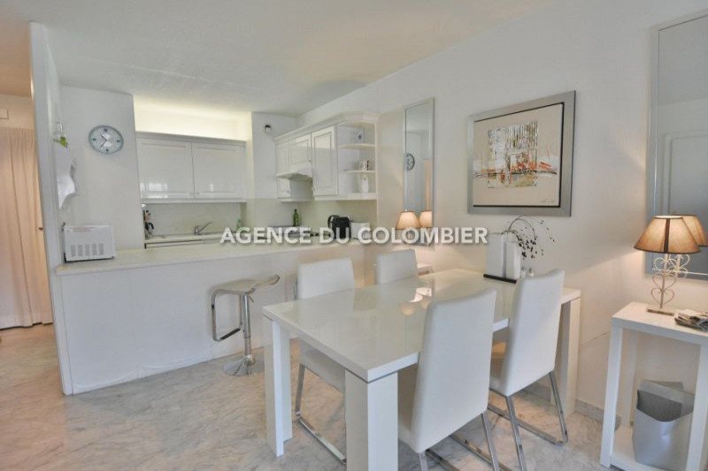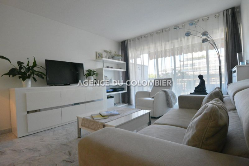 Квартира в Жуан ле Пен рядом с парком Пинед, в престижной резиденции с консьержем, бассейном и теннисным кортом. Жилая площадь составляет 45 м2: просторная гостиная, открытая кухня, спальня с выходом на террасу, душевая и туалет. Западная терраса 16 м2. Гараж в подземном паркинге.