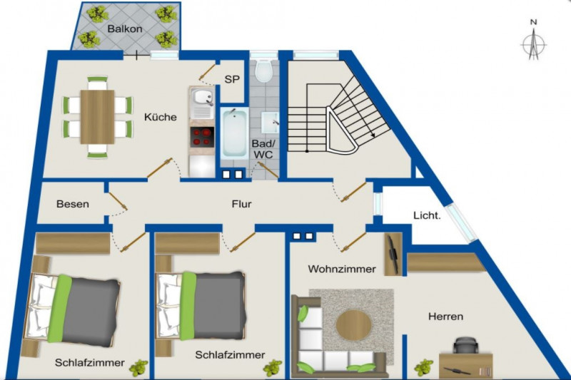 Квартира с 5 комнатами и около 88 м². жилой площади.