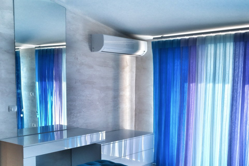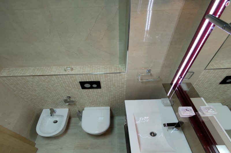 Квартира 103м2 - 8 этаж - просторная гостиная совмещенная с кухней и столовой, три спальни, две ванные комнаты, одна из которых находится внутри комнаты и две большие террасы. Кондиционер есть в каждой комнате. С одной террасы открывается прекрасный вид на город и море, а с другой террасы открывается вид на горы.