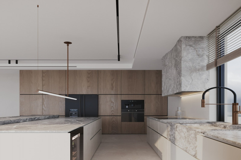 Планировка виллы: 2 кухни, просторная гостиная (холл) 160 м², пять спален, семь ванных комнат, террасы на каждом этаже, зона отдыха с джакузи на третьем этаже и три технических помещения.