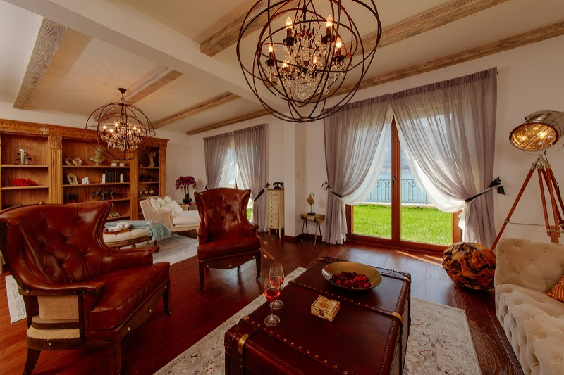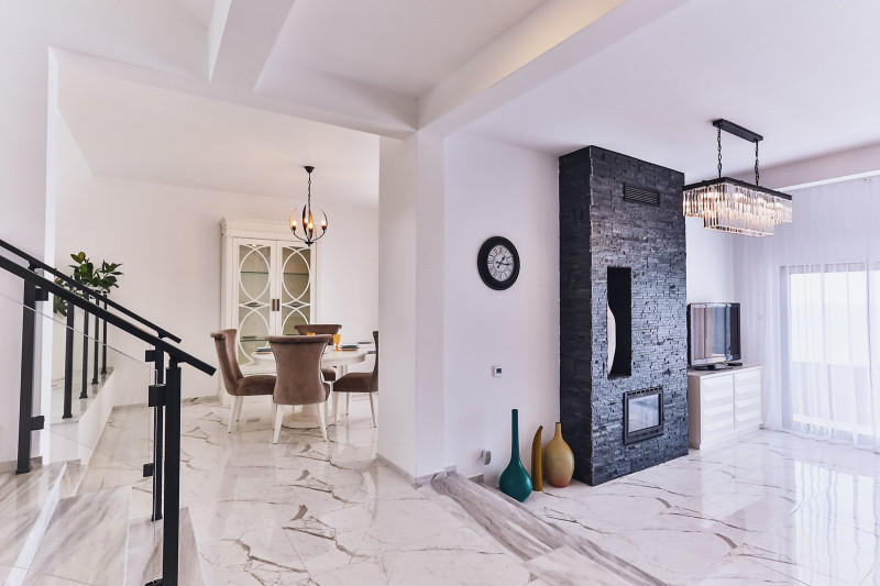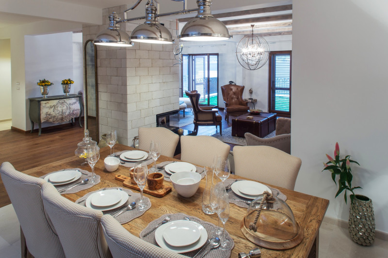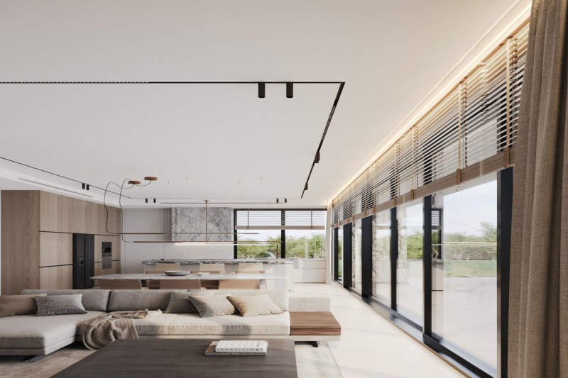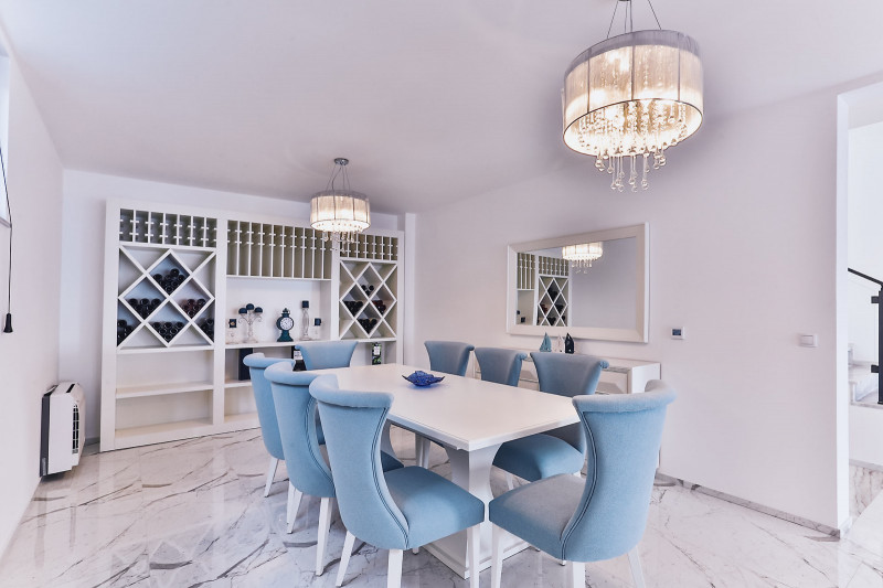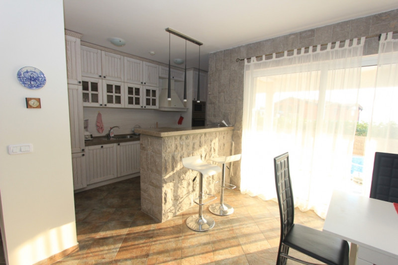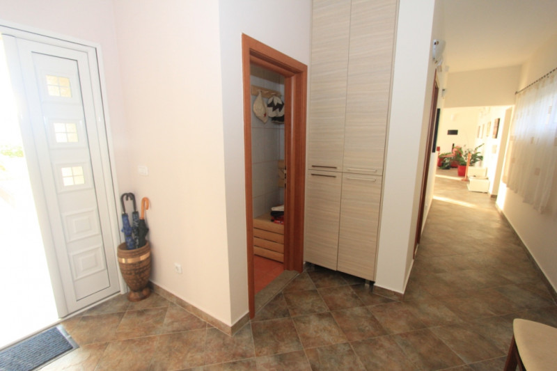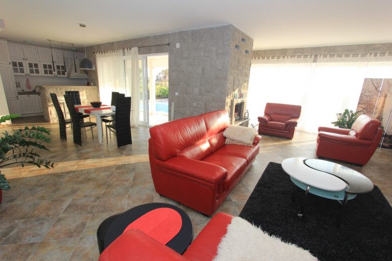 Вилла полностью меблирована, оборудована кондиционами и видеонаблюдением. При строительстве виллы большое внимание было уделено теплоизоляции, во всех помещениях сделаны теплые полы на воде с тепловыми насосами. Вилла имеет гараж на 4 машины.