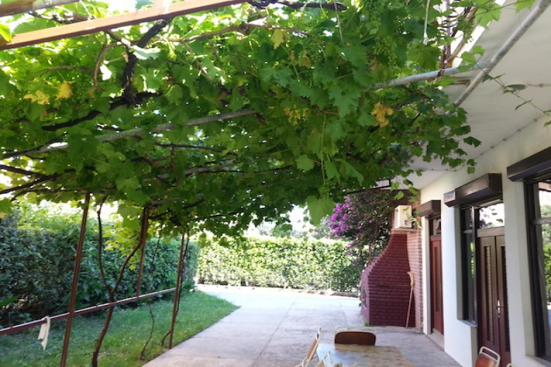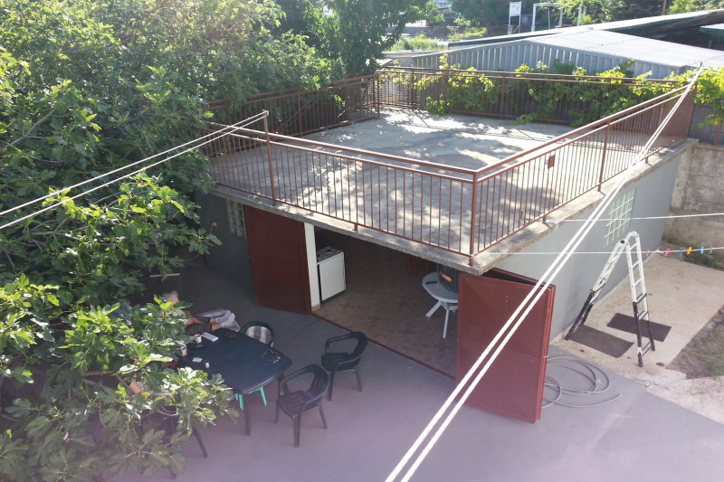 Возле дома большая парковка для автомобилей и отдельно стоящая летняя кухня с террасой.