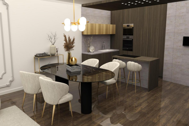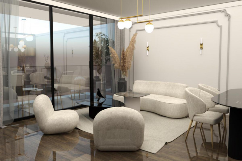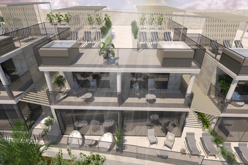 -на первом этаже кухня совмещенная с гостиной, две спальни, две ванные комнаты и просторная терраса.
