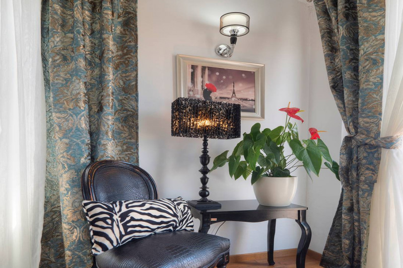 Эта вилла состоит из 4 этажей, на первом уровне находится рецепция, на трех других - апартаменты, а перед виллой есть детская площадка и сад.