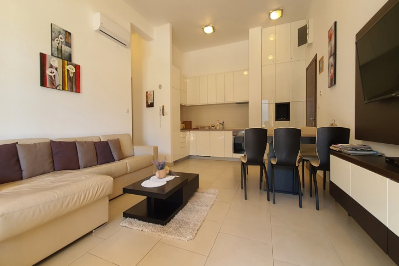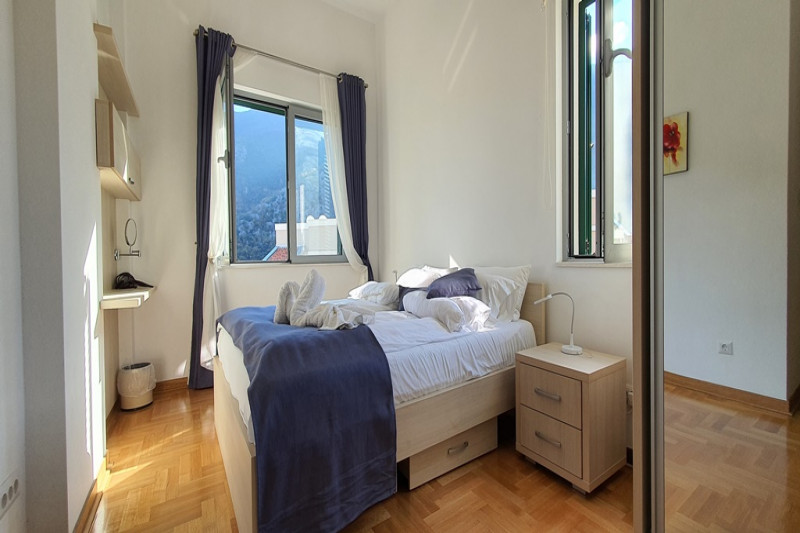 Продается квартира в самом центре города Будва. Квартира расположена в пятиэтажном здании на четвертом этаже, откуда открывается вид на горы. Здание расположено всего в 300 метрах от моря, в шаговой доступности кафе, рестораны и продуктовые магазины, торговые центры и самый длинный пляж в Будве.