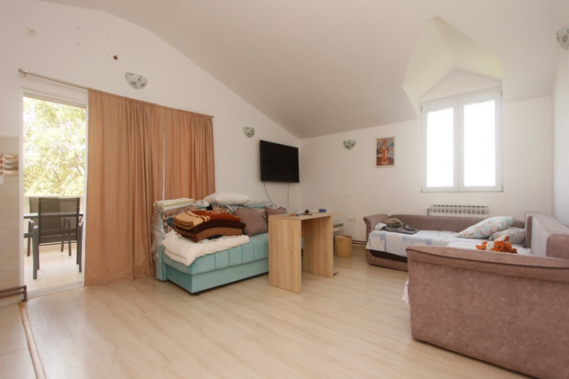 Продается двухэтажный дом в Радановичи, Котор. Дом общей площадью 330 м² расположен на участке площадью 1536 м². Расстояние до моря составляет 10 км В дом введены городские коммуникации (электричество и вода), канализация септик. Планировка дома: 1 этаж: прихожая, подсобное помещение, спальная, санузел. 2 этаж: квартира-студия и однокомнатная квартира.