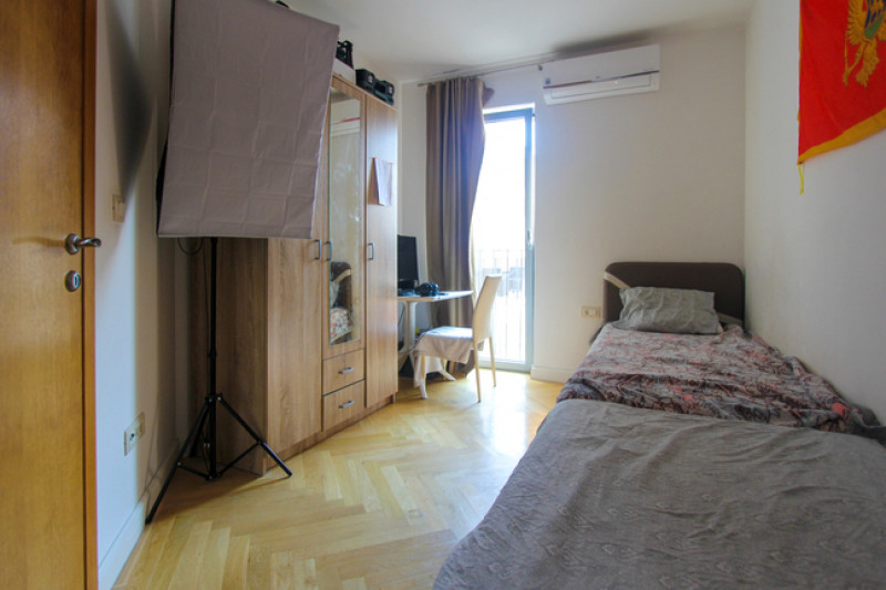 Продается квартира класса люкс в Будве, общей площадью 85 м². Квартира расположена на шестом этаже в семиэтажном здании с лифтом. Здание находится в нескольких минутах ходьбы от пляжа, линии набережной, ресторанов и всех удобств. Квартира полностью меблирована. Квартира имеет планировку: гостиная с кухней, спальная комната, ванная комната и большая терраса. Квартира оборудована системой умный дом и теплый пол.