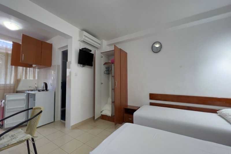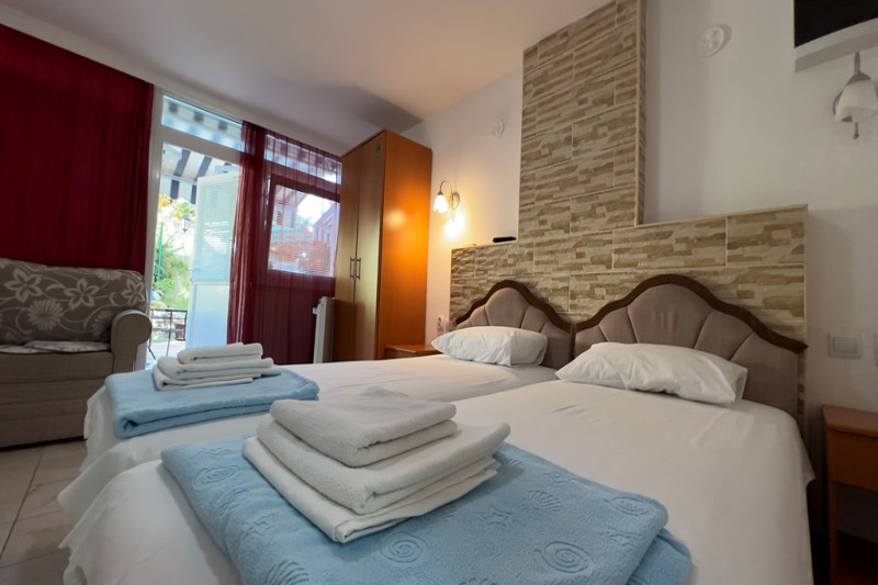 • Двухкомнатная квартира 55 м² - кухня со столовой, две спальни, ванная комната, две террасы.
