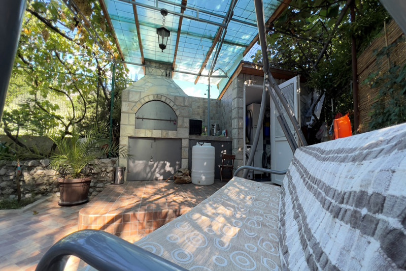 1 этаж - студия 46 м² с кухней и ванной. Перед квартирой находится зона для барбекю и внутренний двор.