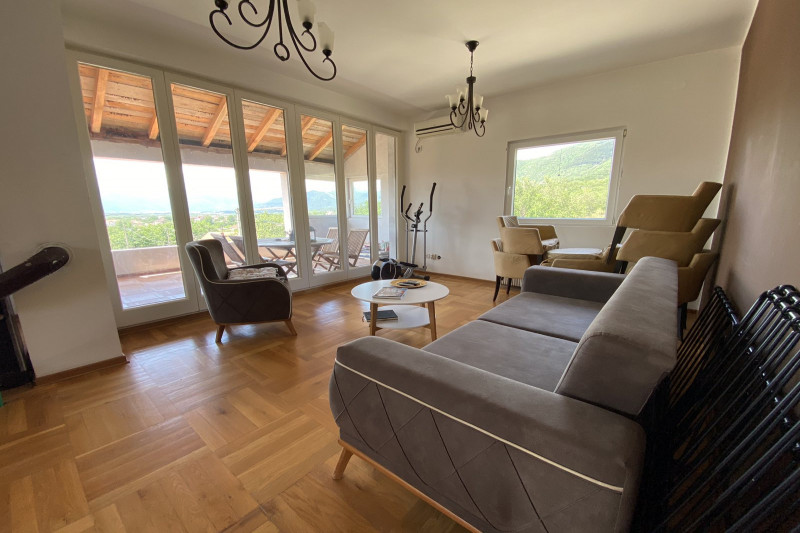 Продается новый дом в районе Ивановичи, в городе Будва. Дом площадью 282 м² имеет участок 320 м². В доме есть вид на море, а также бассейн. Структура дома: Первый этаж - просторная гостиная с панорамными окнами, санузел, душевая, котельная. Второй этаж - квартира с двумя спальнями, каждая из которых имеет балкон и гардероб, большая ванная комната, гостиная. Третий этаж - просторная студия с панорамными окнами, состоящая из кухни, столовой, гостиной, рабочей комнаты, балкона, прихожей и ванной комнаты. В доме есть электричество, отопление и солнечные батареи на крыше. Новый дом с качественной мебелью.