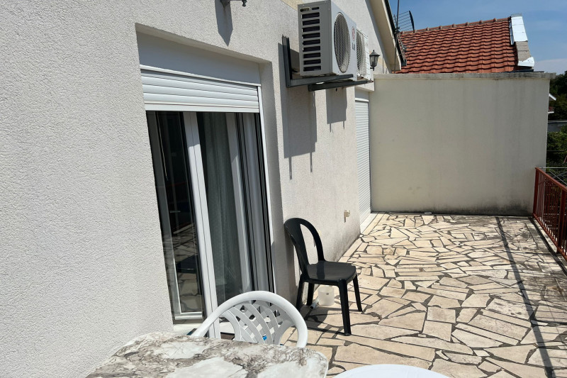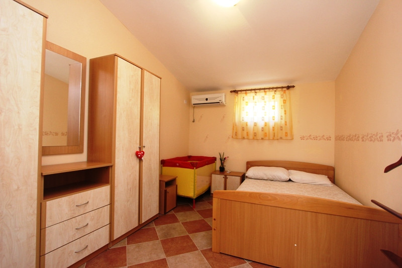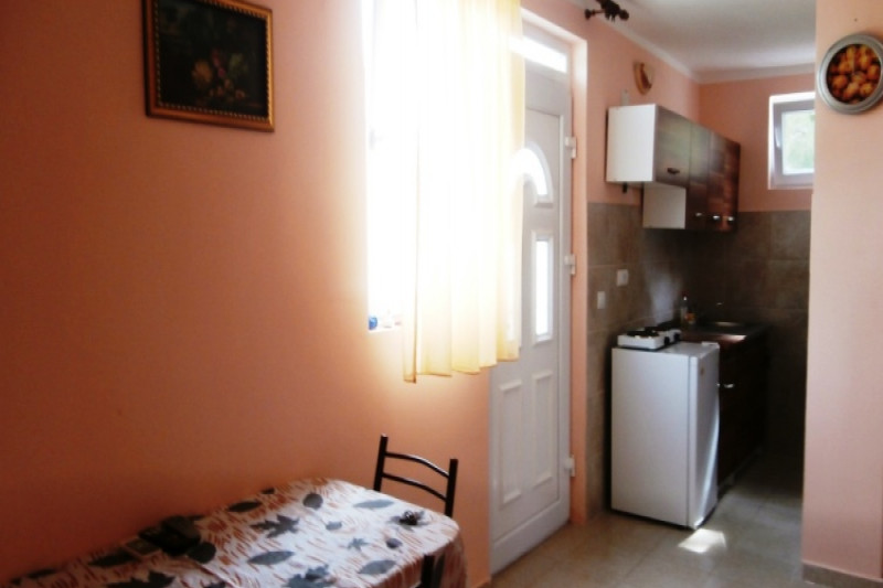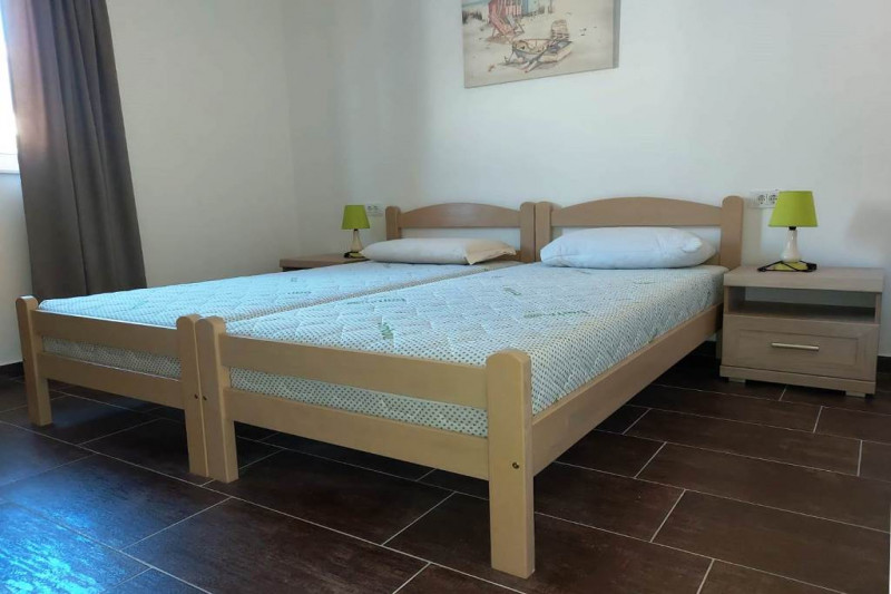Дом окружен соснами, кипарисами, эвкалиптами и оливками. Удаленность от моря 400 м (от пляжей Мальевик и Стрбина). В саду есть барбекю, каменная беседка, виноградник и автостоянка. В доме есть электричество и городская вода. Кроме того, имеется дополнительный бак на 3000 литров, обеспечивающий бесперебойную подачу воды 24 часа в сутки. Все квартиры полностью оборудованы. Каждая квартира оборудована спутниковым ТВ, интернетом. Каждая квартира имеет отдельный вход.