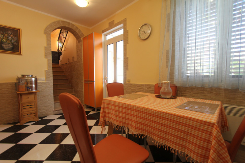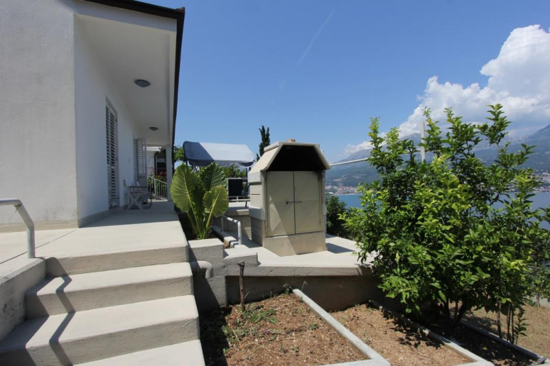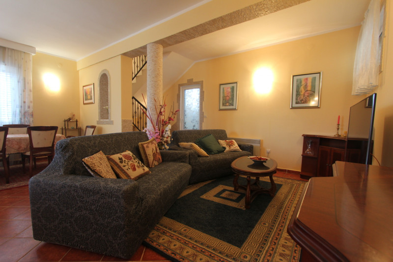 Продается дом в Которе, в тихом районе Моринь. Дом общей площадью 200 м² расположен в 1000 метрах от моря. Дом расположен на участке площадью 180 м². Все этажи имеют отдельные входы, на каждом из которых ванная комната. Есть гараж на 2 машины и большая терраса (20 м²) с барбекю зоной. Электричество городское, вода + резервуар, канализация септик. Дом имеет 3 этажа: 1 этаж – апартамент, ванная комната, кухня, кладовка. 2 этаж - гостиная с кухней, три спальных комнаты, ванная комната, балкон и выход на большую террасу. 3 этаж - гостиная с кухней, спальня, санузел, балкон (5 м²).