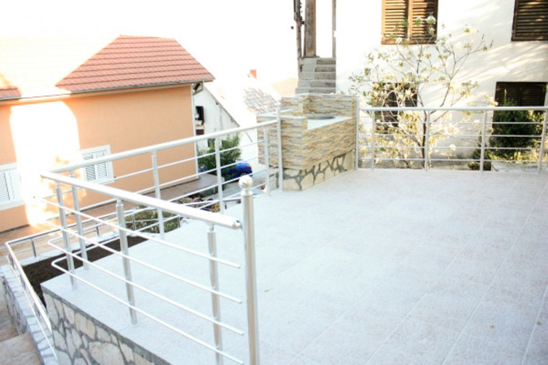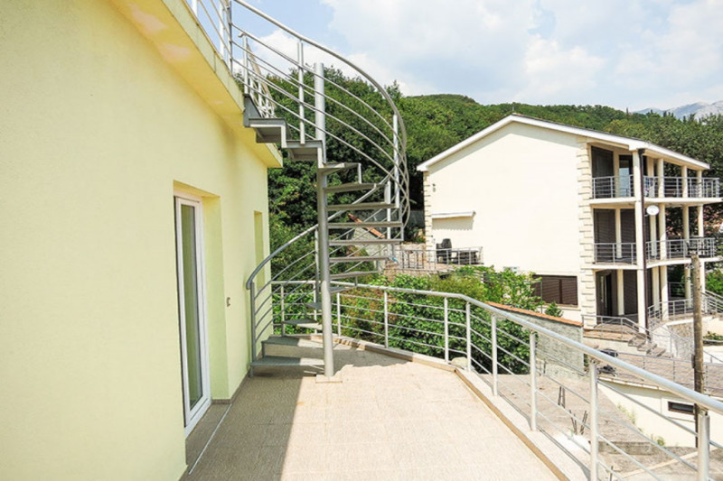 Продается дом в Тиватской Ривьере, в поселке Луштица. Плошадь дома составляет 300 м², расположен на участке общей площадью 500 м². Дом имеет три этажа, состоит из пяти апартаментов. Каждый апартамент имеет свой санузел и кухню. Около дома есть бассейн и парковка. Расстояние до города составляет 10 км Расстояние до самого ближайшего пляжа 2 км и до аэропорта 20 км. На первом этаже находится квартира с двумя спальными комнатами. На втором этаже находится студия и одна квартира с одной отдельной спальней. На третьем этаже находятся две студии. Внутренние лестницы.