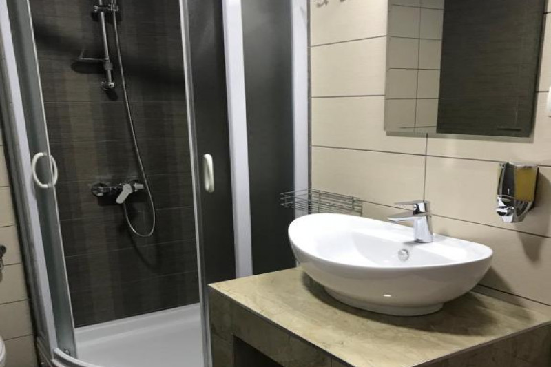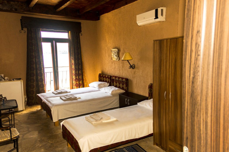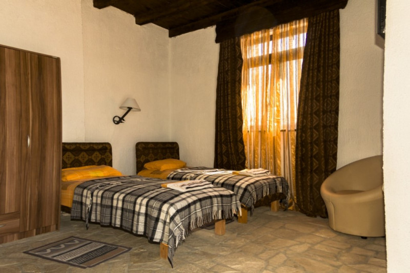 Новый отель построен в прошлом году, имеет 3 этажа, на первом этаже рецепция, ресторан с кухней, 2 склада и туалеты.