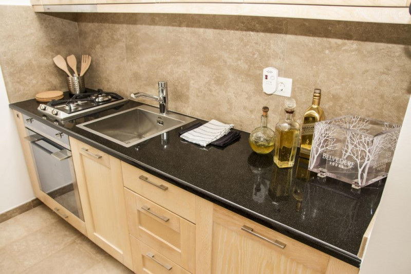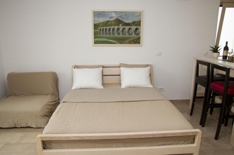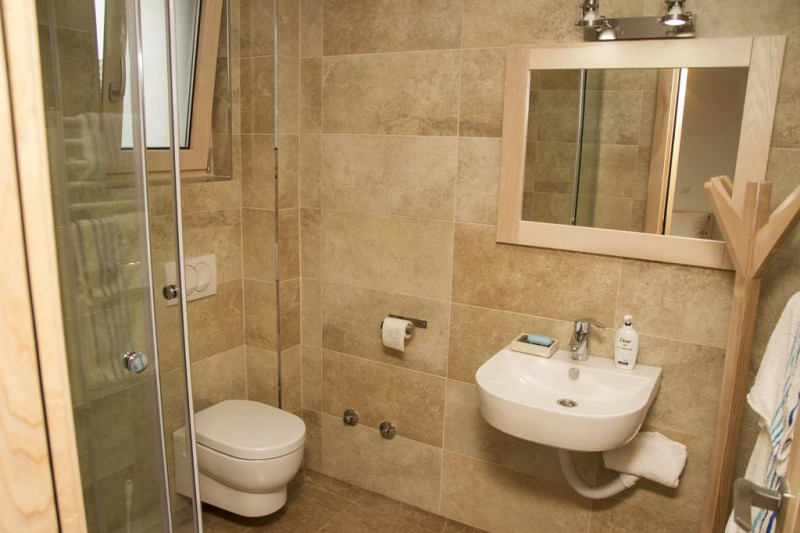 На втором этаже есть 8 апартаментов (3 апартамента с трехместные и 5 апартамент двухместные), в каждом апартаменте есть мебель, санузлы с отоплением теплый пол, 4 апартамента имеют террасу, 4 апартамента без террасы, также есть общая большая терраса.
