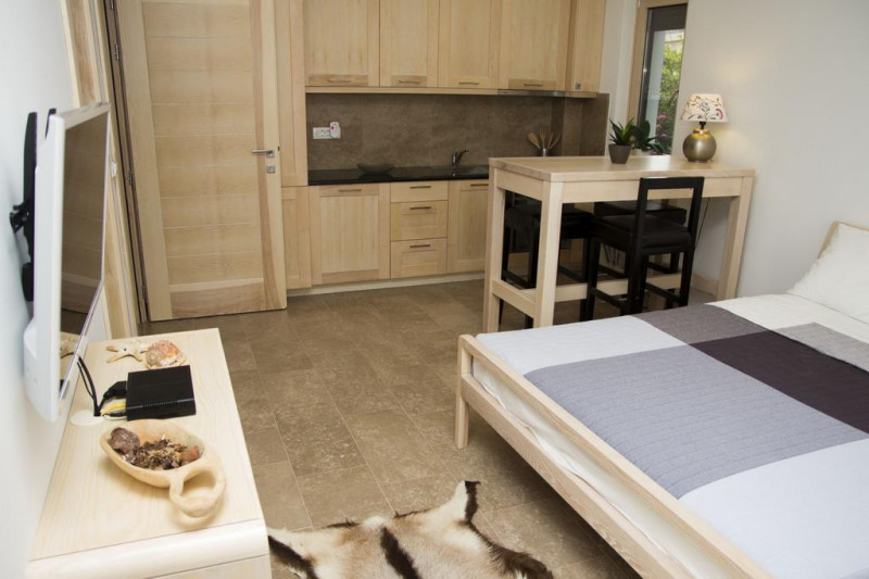 На третьем этаже есть 8 апартаментов (3 апартамента с трехместные и 5 апартамент двухместные), в каждом апартаменте есть мебель, санузлы, 4 апартамента имеют террасу, 4 апартамента без террасы, также есть прачечная.