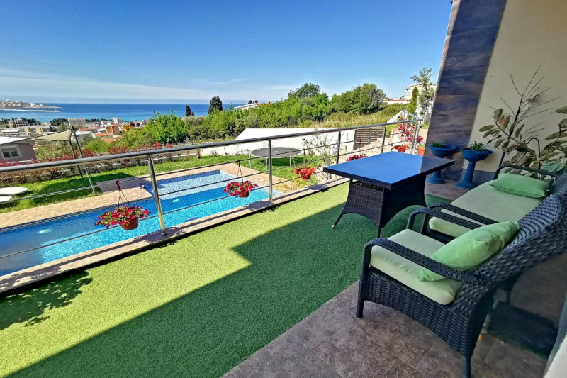 Продаётся роскошная Вилла в живописной «Утехе» с неповторимым видом на всё Адриатическое побережье в 150 м от морской глади. Площадь Виллы 228 м², площадь участка 727 м². В здании имеется: 4 спальни, гостиная часть + кухня, 3 ванных комнаты, 2 гаражных места, 2 технические комнаты, терраса, бассейн, уютная крытая зона отдыха на свежем воздухе с грилем и коптильней. В доме стоит центральное отопление. По всему периметру установлены камеры видео наблюдения. Так же есть интернет + ТВ.