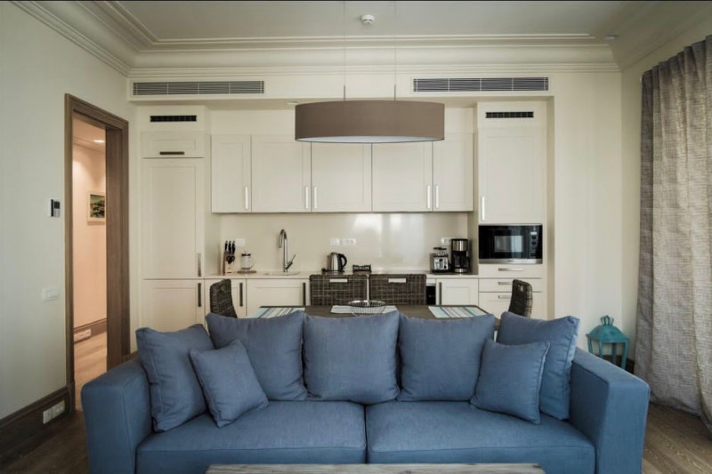 Каждый апартамент имеет ванную, кухню, балкон с видом на море, LCD телевизор, DVD, кабельное телевидение, интернет, кондиционеры, вода круглосуточно, бассейн, двор, парковка.
