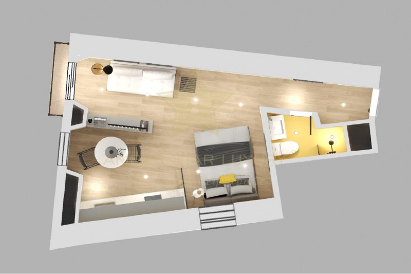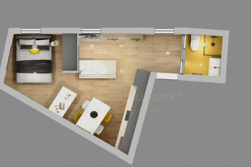 -Общая зона / большая спальня, оборудованная кухня и ванная комната.