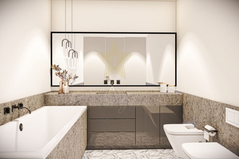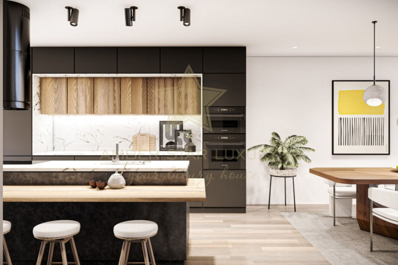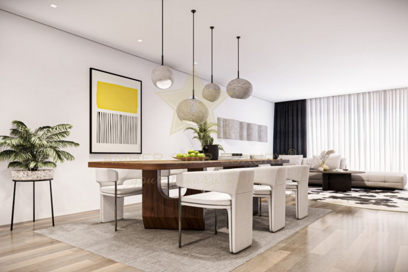 На цокольном этаже будет гараж площадью 53 м² и прачечная площадью 23 м². На первом этаже дома у вас будет прихожая 6 м², гостиная 24,30 м², столовая 16 м², кухня 10,25 м² и туалет 2,50 м². На 1-м этаже у вас будет сьют площадью 25,30 м² с гардеробной и ванной комнатой площадью 4,70 м², две спальни площадью 12 м² и общая ванная комната площадью 5,50 м².