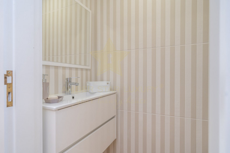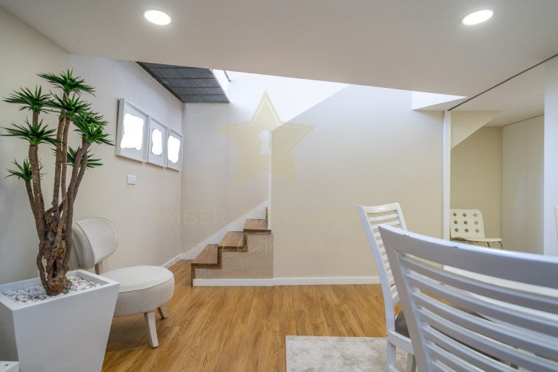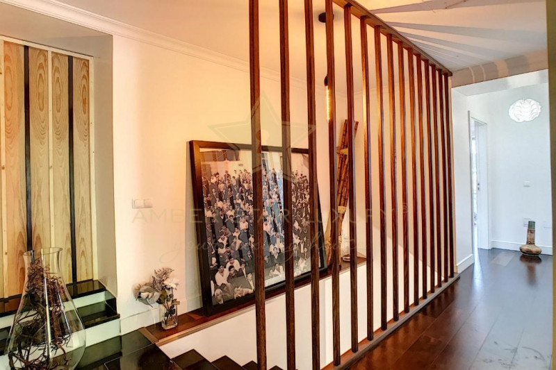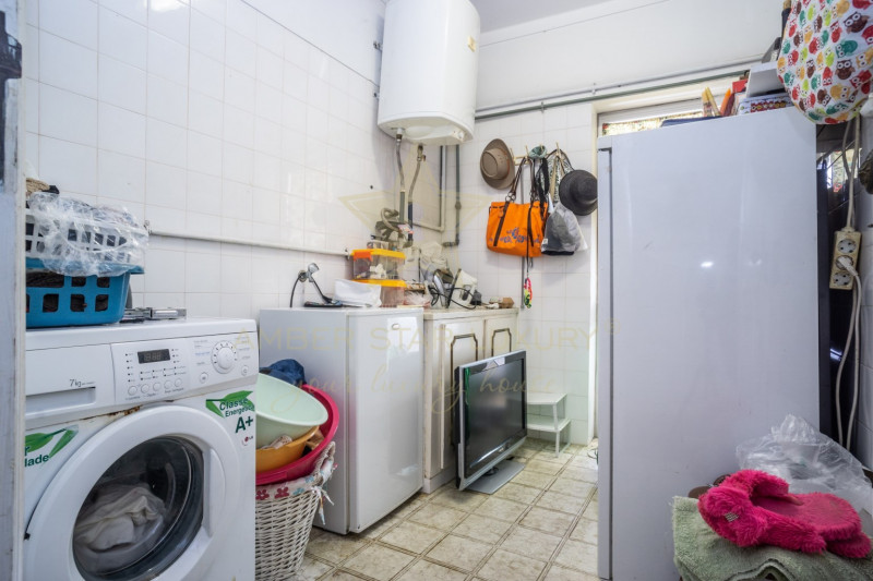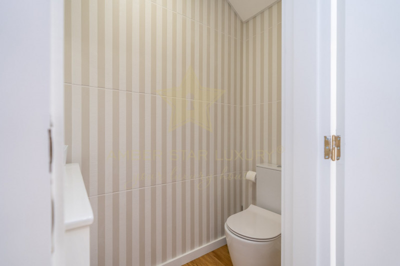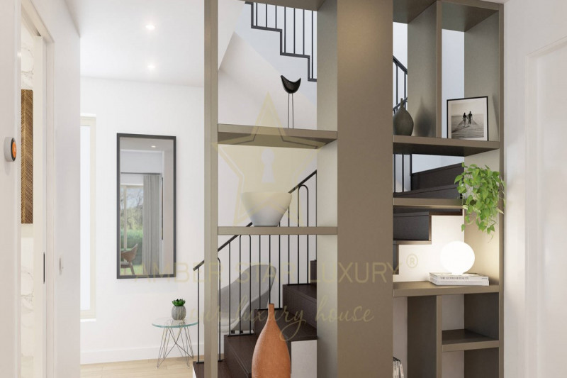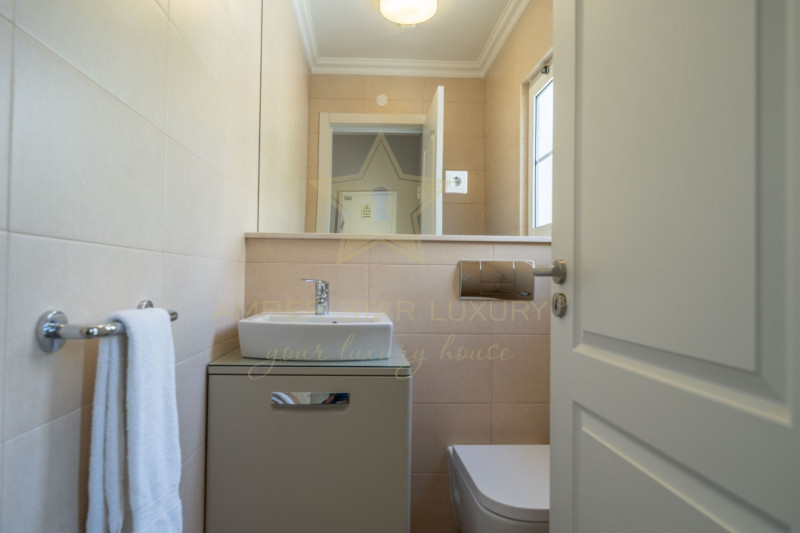 На первом этаже расположены: прихожая, гостиная, столовая, кухня, прачечная, гостевая ванная комната, подсобное помещение, столовая на улице, сад и частный гараж с кладовой.