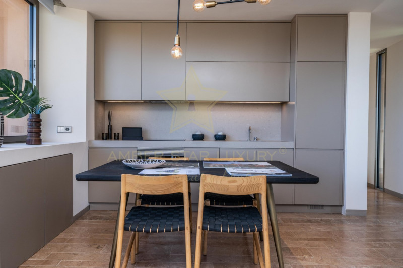 - Индукционная плита, печь, микроволновая печь, посудомоечная машина, холодильник и встроенная стиральная / сушильная машина, марки SIEMENS или AEG;