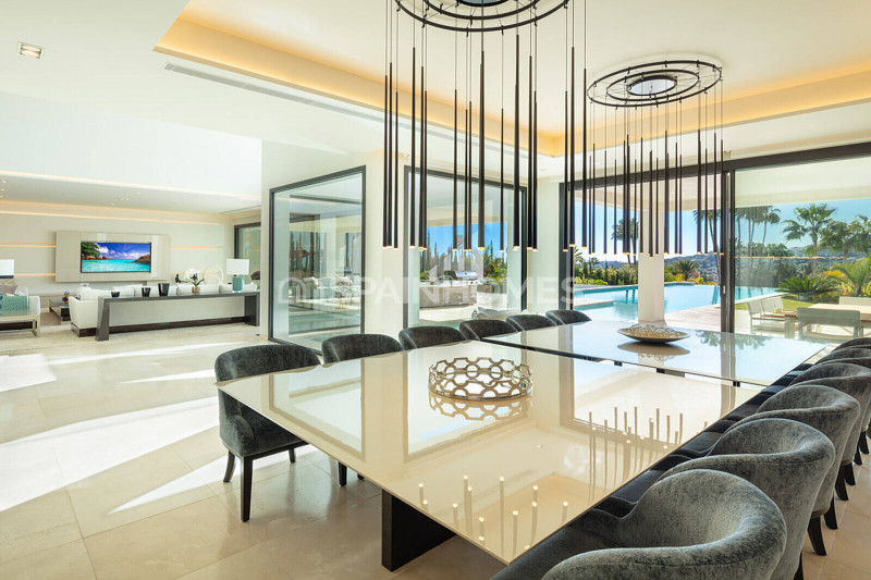 Роскошный дом представляет собой уникальную современную недвижимость, которую можно смело считать одной из лучших новостроек на рынке. Современный особняк имеет огромную внутреннюю площадь 1150 м². Дом спроектирован с использованием передовых технологий, роскошных материалов и отделки. Отдельностоящий дом в Марбелье имеет 9 спален, 9 ванных комнат, гостиную открытой планировки с холлом, каминный салон, обеденные зоны, бар. Дом оснащен полностью оборудованной стильной кухней с техникой премиум-класса.