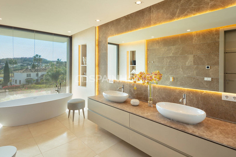Потрясающий роскошный дом расположен в районе Нуэва Андалусия в городе Марбелья. Муниципалитет Марбельи был признан одним из самых популярных направлений не только в Испании, но и во всей Европе. С одной стороны, Марбелья, символ роскоши и гламура, является статусным и знаковым местом. С другой стороны, муниципалитет известен своей удивительной природой, уникальным микроклиматом и фантастическими пляжами. Благодаря такому сочетанию, Марбелья является престижным местом для жизни. В регионе находятся некоторые из лучших полей для гольфа, что делает Марбелью настоящим раем для любителей гольфа. Кроме того, здесь есть корты для игры в падель (испанская разновидность «короткого» тенниса), различные спортивные центры и площадки, парки, центры водных видов спорта и тренажерные залы.