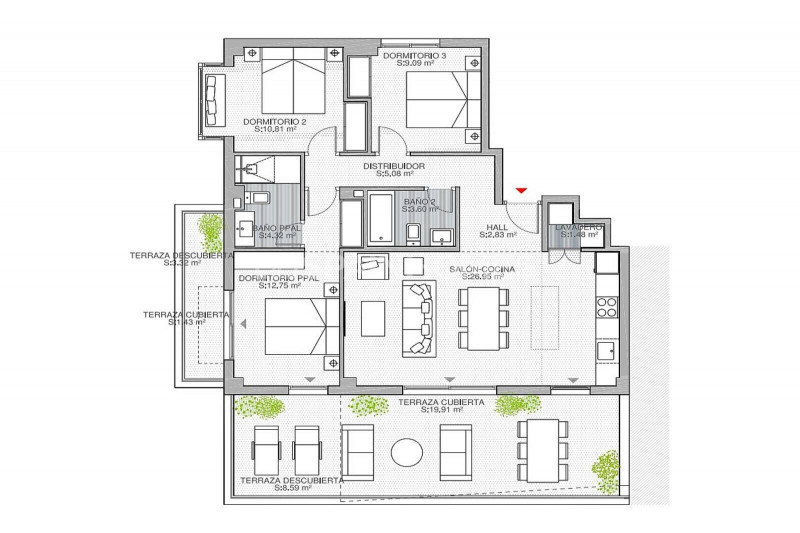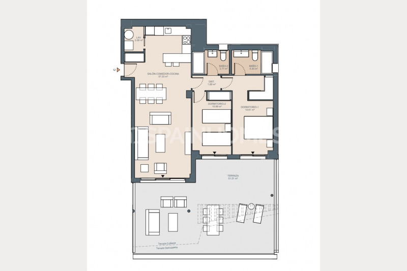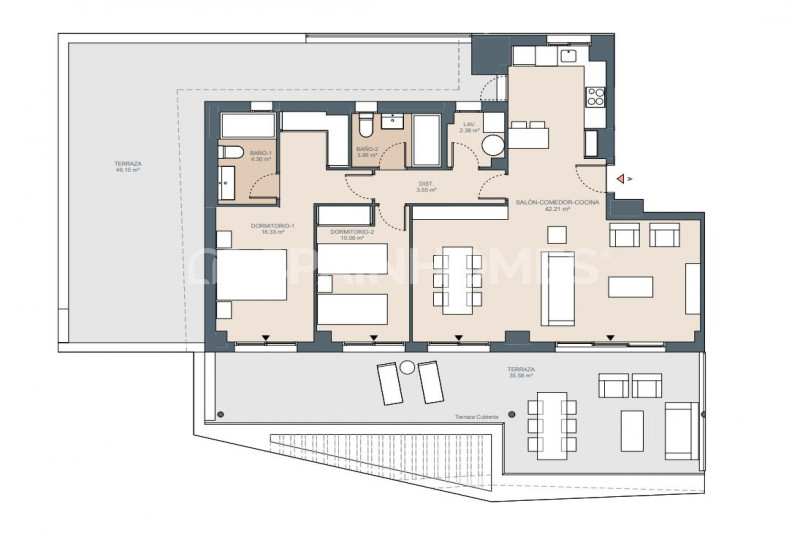 Комплекс состоит из 3 блоков, в которых находится 34 квартиры с 1, 2 и 3 спальнями. В комплексе есть бассейны для взрослых и детей и великолепные террасы с прекрасным видом на море.