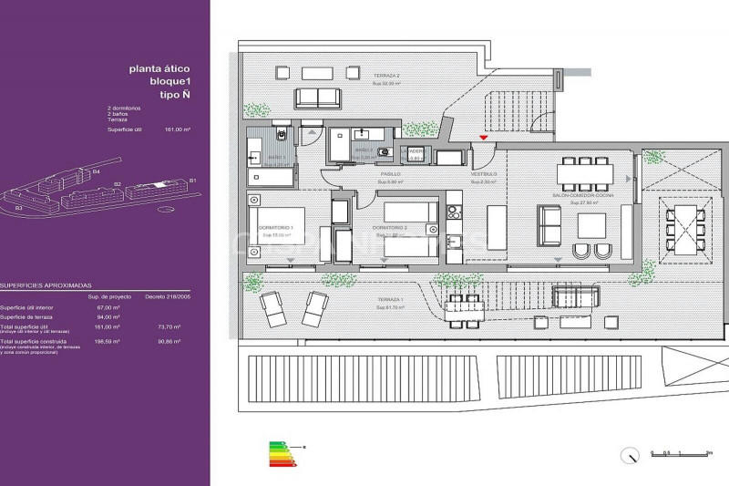 Современная недвижимость спроектирована с просторными террасами с прекрасным видом на море. В этом экологичном проекте предполагается использование материалов и мер по сокращению выбросов углекислого газа, таких как большие окна, чтобы максимально использовать естественное освещение, теплоизоляция и возобновляемые источники энергии. Современная недвижимость будет сдана с полностью оборудованными кухнями открытой планировки и теплыми полами. Все блоки будут иметь частную кладовую и как минимум одно парковочное место с инфраструктурой для установки зарядного устройства для электромобилей.