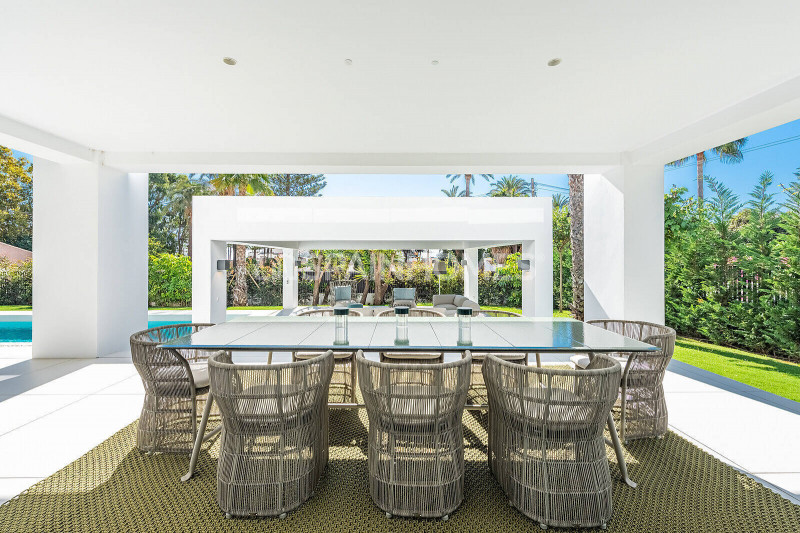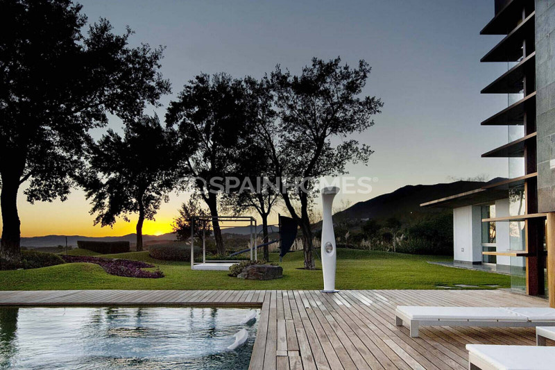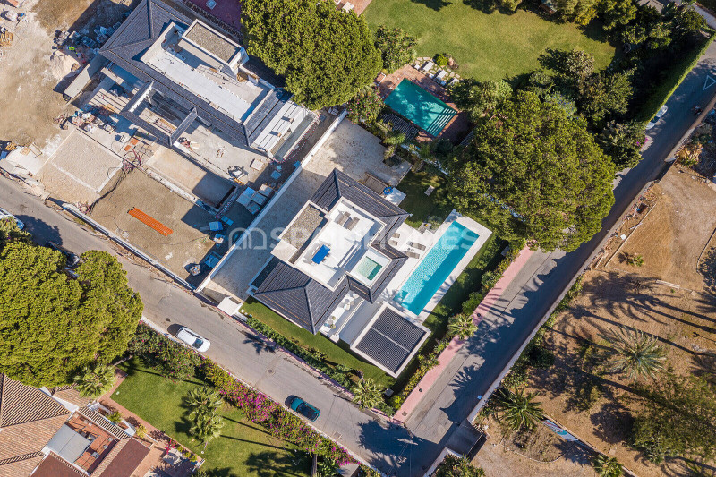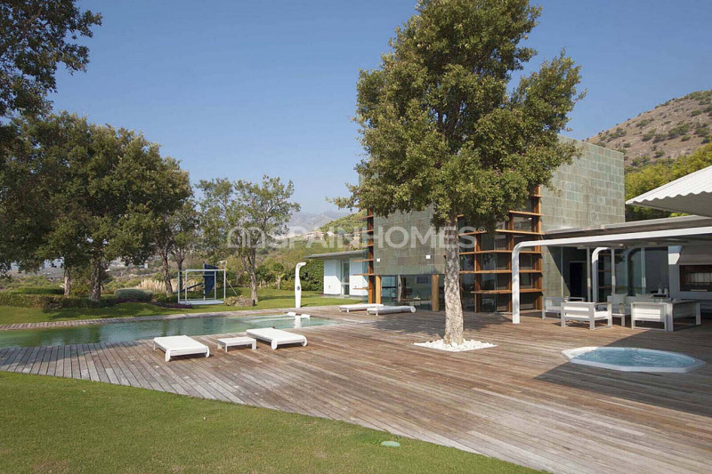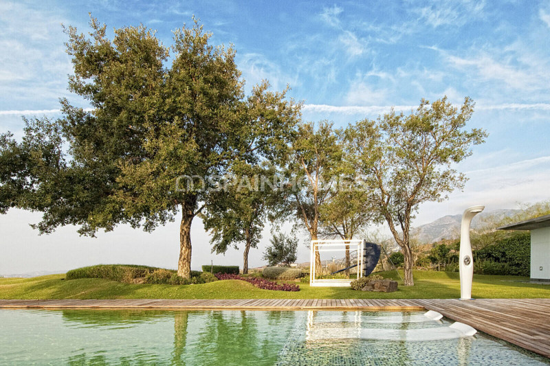 Роскошная вилла находится в хорошо охраняемом районе, окруженном красивой природой, превосходными полями для гольфа и аналогичной элитной недвижимостью Новой Золотой Мили и Бенаависа. Расположенная на возвышенном участке площадью 2500 м², выдающаяся вилла построена по самым высоким стандартам и предлагает стильный дизайн, интегрированный в прекрасную природу с живописным панорамным видом на Средиземное море и поле для гольфа. На участке возле виллы есть оборудованные открытые площадки с выделенными зонами для развлечений и отдыха, летняя кухня, барбекю, площадки для загара и, конечно же, каскадный бассейн-инфинити.