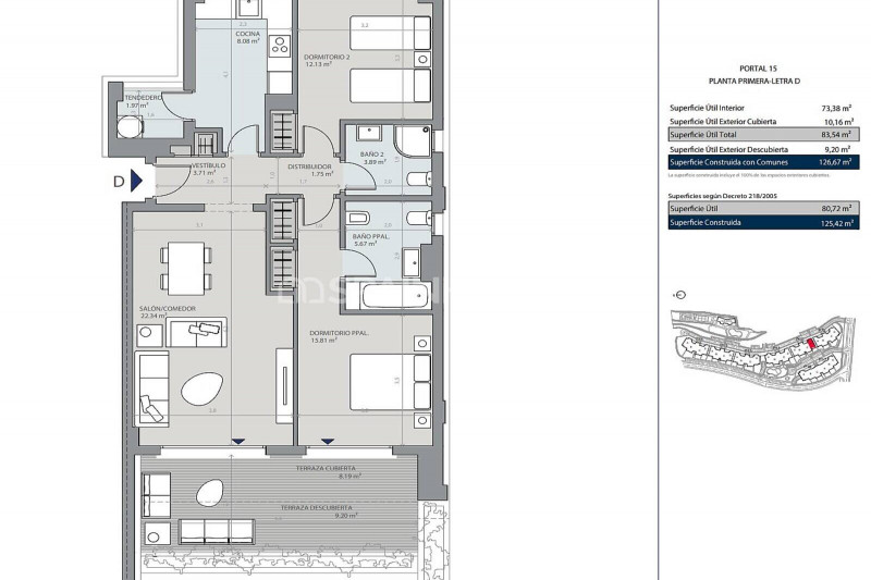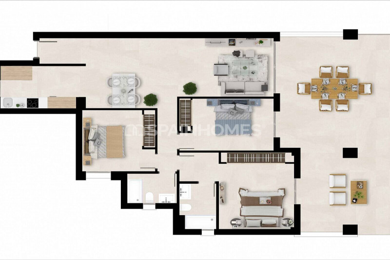 Проект состоит из 68 современных квартир с 1, 2 и 3 спальнями, большими террасами, выходящими на юго-восток, и первоклассной отделкой. В квартирах будут полностью оборудованные кухни с компактной столешницей и всей техникой: электрической духовкой, стеклокерамической плитой, вытяжкой, холодильником. Каждая квартира была тщательно спроектирована, чтобы добиться просторных и практичных помещений и обеспечить максимальный комфорт. В стоимость покупки входит парковочное место и кладовая.