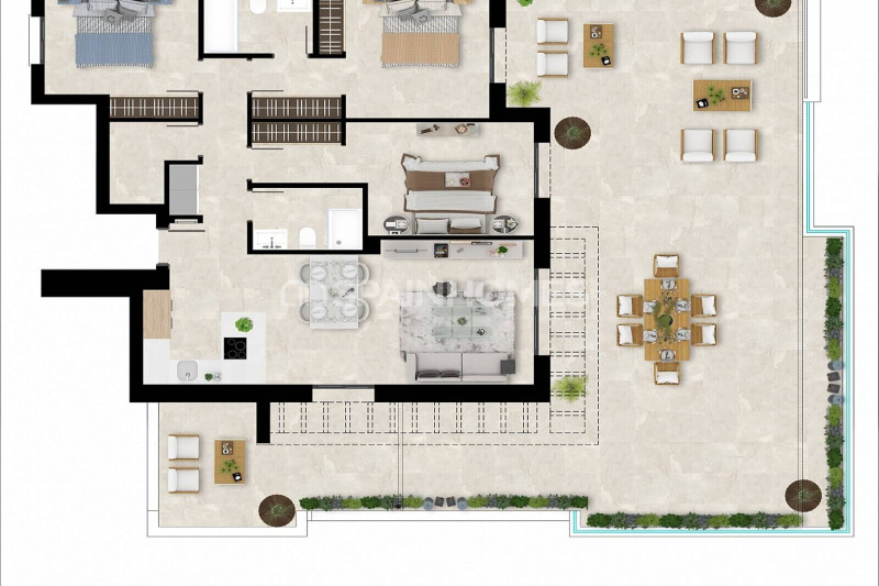 Апартаменты и пентхаусы оформлены в современном стиле и имеют открытые и светлые интерьеры. Квартиры с функциональной планировкой выполнены с учетом энергоэффективности для экономии энергоресурсов. В квартирах также имеются просторные террасы, с которых открывается прекрасный вид на море и горы. В стоимость всех квартир включено парковочное место и кладовая.