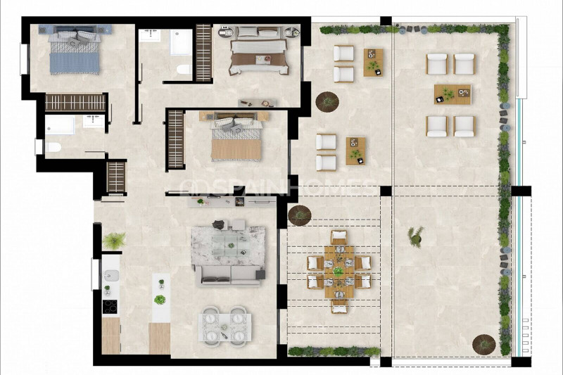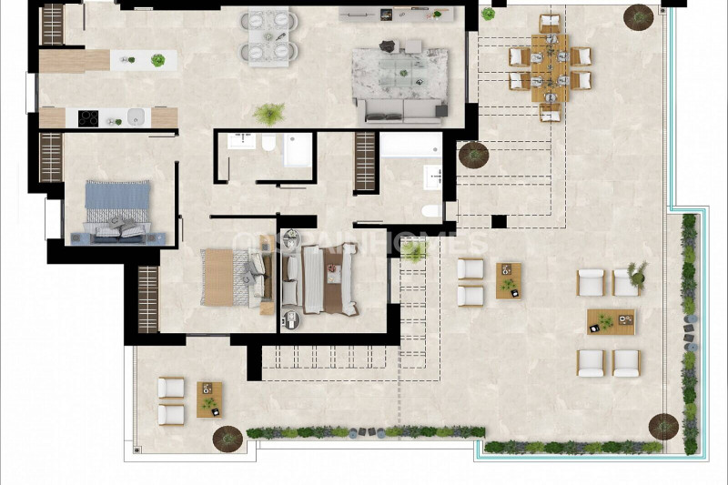 Апартаменты в Касарес-Коста расположены в роскошном комплексе закрытого типа, состоящем из 74 квартир с 2 и 3 спальнями. Проект включает в себя 7 трехэтажных зданий и предлагает высокий уровень конфиденциальности и безопасности.
