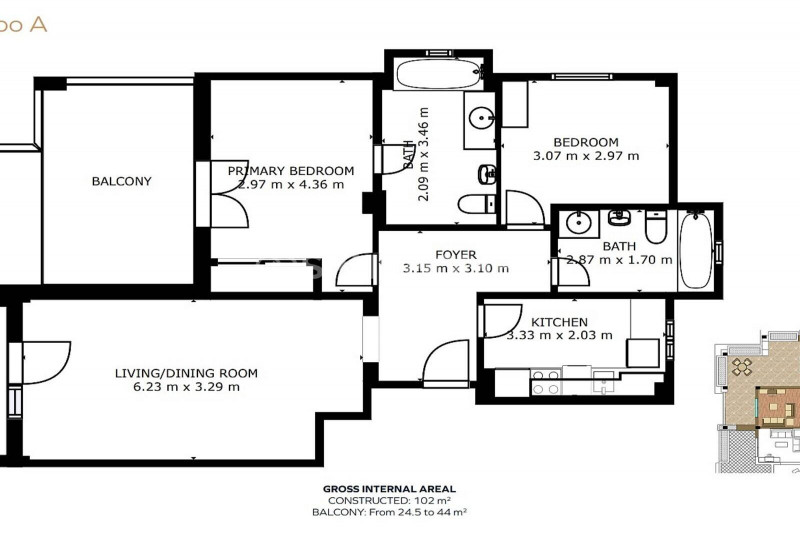 Жилой комплекс состоит из 75 квартир с 2-мя и 3-мя спальнями и светлыми, просторными комнатами, буквально наполненных солнцем в дневные часы. В этом современном комплексе есть большая территория общего пользования, где есть бассейн, площадки для принятия солнечных ванн, ухоженный сад, крытая и открытая автостоянки, консьерж и лифт.