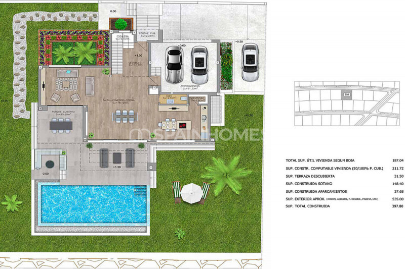 Согласно уникальному проекту, у каждой виллы есть собственные бассейн, сад, крытая и открытая парковки.
