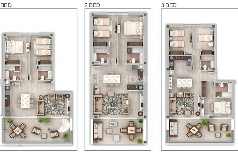 Совершенно новые квартиры оснащены кухонной и бытовой техникой, кондиционером, жалюзи, ванной, гардеробной, дополнительной ванной комнатой, кухней открытой планировки, прачечной, солярием и кладовой.