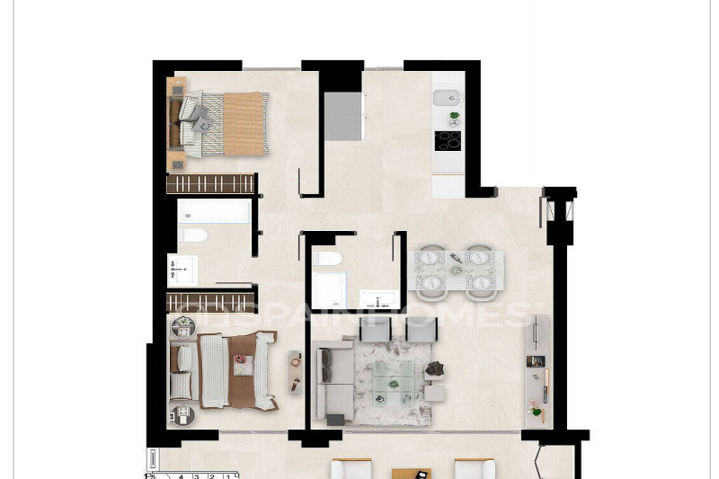 В квартирах на продажу в Марбелье есть большие террасы с великолепными панорамными видами на море и горы, выходящие на юго-восток и юго-запад. Кухни оборудованы стиральной машиной, посудомоечной машиной, холодильником, плитой, электрической духовкой, мойкой, вытяжкой и микроволновой печью.