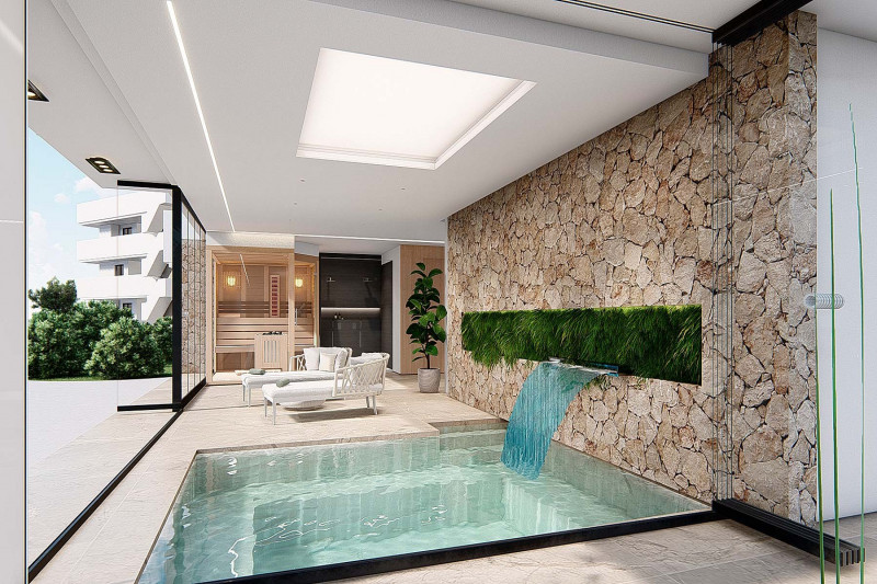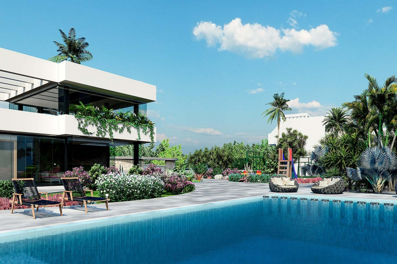 Все дома ориентированы на большой центральный сад резиденции с растительностью, зонами отдыха и прогулок, детской зоной, площадкой для игры в петанк и общим бассейном. Он также имеет гараж в подвале. с тренажерным залом и спа.