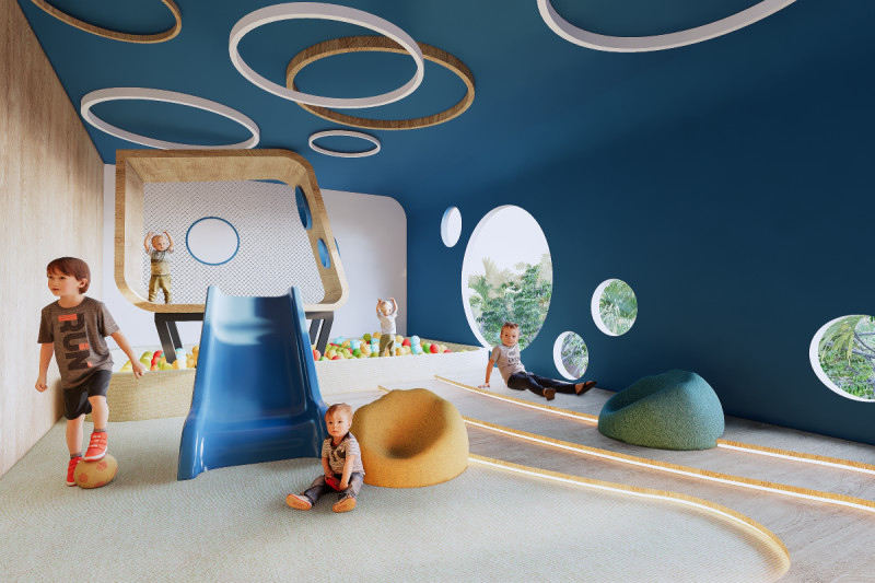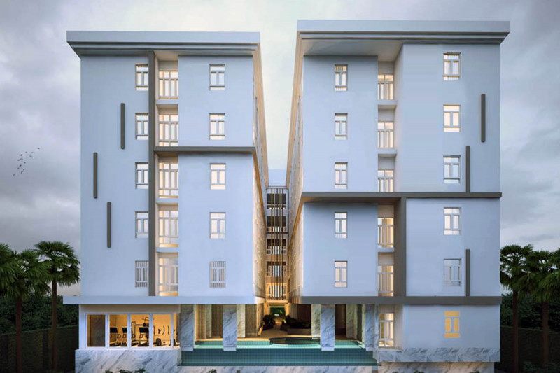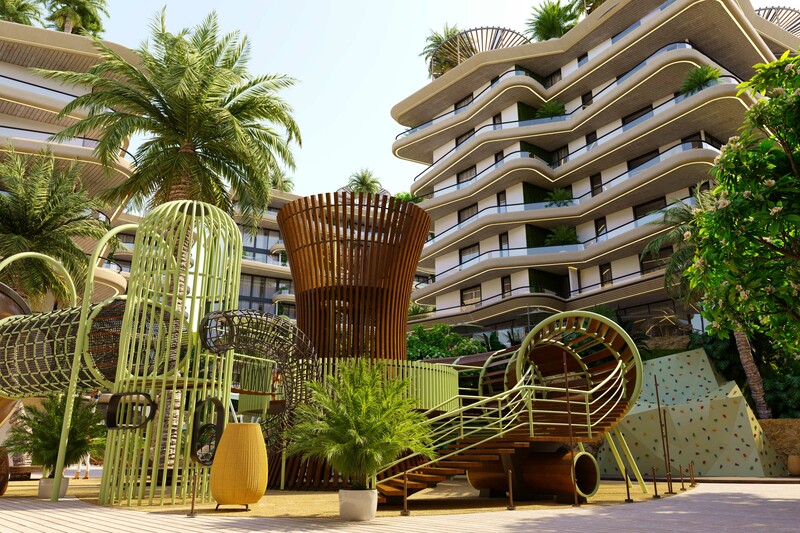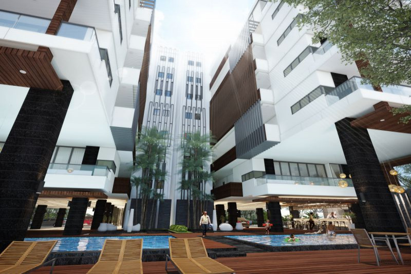 Проект будет состоять из 7 зданий. Причем, 6 из них будут семиэтажными, а последнее, здание D, будет иметь необычный бассейн на крыше и насчитывать шесть этажей. Чтобы вы могли быстро добираться к бассейну, выделен отдельный экспресс лифт.
