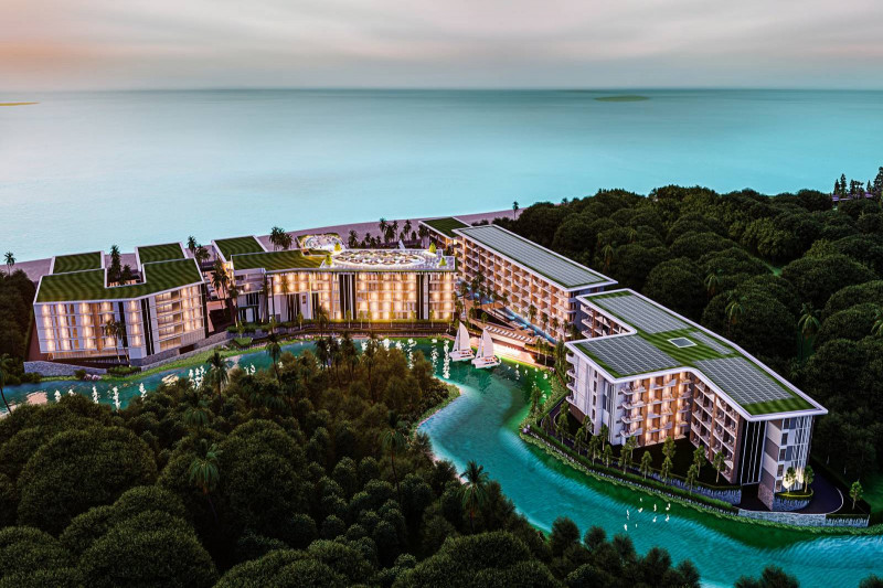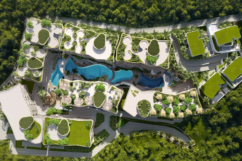Общая территория комплекса - 15,056 м², общая территория садов 2,600 м², общая территория бассейнов 1,672 м².